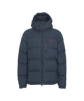This quilted puffer from Polo Ralph Lauren is ideal for colder days. It is filled with down feather, offering optimal warmth and lightness. The design features a non-detachable hood, a two-way zipper, and practical zip pockets. Logo embroidery on the chest and elastic cuffs at the sleeves and hem complete the functional design.