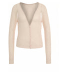 This elegant cardigan by Roberto Collina features a fine knit quality and a feminine, semi-transparent look. The timeless design is characterized by a deep v-neck and a classic button closure on the front. Made in Italy, this piece represents excellent craftsmanship and superior comfort. Long sleeves with delicately ribbed cuffs harmoniously complete the luxurious appearance.