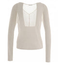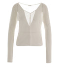 This elegant cardigan by Roberto Collina features a fine knit quality and a feminine, semi-transparent look. The timeless design is characterized by a deep v-neck and a classic button closure on the front. Made in Italy, this piece represents excellent craftsmanship and superior comfort. Long sleeves with delicately ribbed cuffs harmoniously complete the luxurious appearance.
