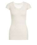 This Roberto Collina t-shirt impresses with its timeless design and high-quality craftsmanship made of pure cotton. Made in Italy, the model features a fine ribbed texture and elegant seam details at the front. The classic round neck and short sleeves ensure a feminine silhouette. A luxurious basic for sophisticated wardrobes.
