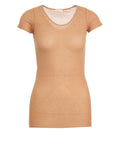 This Roberto Collina t-shirt impresses with its timeless design and high-quality craftsmanship made of pure cotton. Made in Italy, the model features a fine ribbed texture and elegant seam details at the front. The classic round neck and short sleeves ensure a feminine silhouette. A luxurious basic for sophisticated wardrobes.