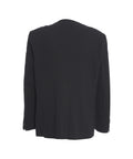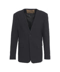 This minimalist blazer by Rue de Tokyo features a structured surface and a deep V-neck. It is equipped with a single-button closure and two patch flap pockets. The modern design makes it a versatile companion for elegant and casual looks.