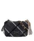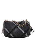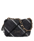The 'Isabel' shoulder bag by La Carrie is a stylish accessory. Crafted from pure cotton, it captivates with its quilted surface and distinctive stripes. The gold-colored chain shoulder strap adds a luxurious touch to the design, while the applied logo emphasizes the brand identity. Perfect for a modern and sophisticated look.