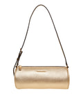 The 'Izzy' shoulder bag stands out with its elegant cylindrical silhouette and premium leather construction. An adjustable shoulder strap offers versatility, while the top zipper ensures security. Metallic details and the signature logo lettering highlight Michael Kors' luxurious aesthetic.