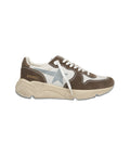 The Golden Goose sneakers 'Running Sole' feature a striking silhouette. Crafted from high-quality suede and durable textile, they offer a sporty yet luxurious look. The iconic star logo on the side and the elevated lug sole emphasize the characteristic design. These exclusive sneakers are made in Italy, combining craftsmanship with modern style.