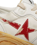 These leather sneakers 'Running sole' by Golden Goose feature their characteristic design with the iconic star motif. Crafted from high-quality leather, they offer a unique combination of luxurious aesthetics and urban flair. The striking profiled rubber sole and intentionally distressed look give these shoes their unmistakable character. Made in Italy.
