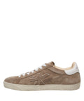 The 'Steven' sneakers by Premiata embody athletic elegance in every fiber. Crafted from soft suede, they offer luxurious wearing comfort. The classic lace-up fastening and round shoe shape emphasize the timeless design. A contrasting heel detail and the subtle brand lettering on the side and sole complete the exclusive look, giving this model an unmistakable touch.