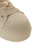 The luxurious 'PIA428A' sneakers from Gio+ are crafted from noble suede. They feature a modern platform sole and a plush detail at the heel, providing additional comfort. The wide shoelaces are adorned with a delightful gold-tone charm, lending an exclusive touch to the design. These stylish shoes offer a perfect blend of elegance and casual chic.