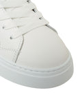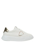 The luxurious leather sneakers 'Temple' by Philippe Model feature an elegant, sporty design. Crafted from high-quality smooth leather, they are distinguished by a glossy heel detail and a characteristic triangular brand logo on the side. The elevated platform sole ensures modern style and comfort. These exclusive sneakers were Made in Italy.