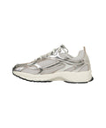 These fashionable sneakers by The Mercer are characterized by their striking design. The upper features a dynamic mix of knit textile and metallic-look elements. A raised profile sole ensures wearing comfort and a modern look. Perfect for urban styles and a confident appearance.