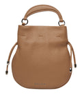 This elegant handbag captivates with its high-quality, grained leather and appealing design. It is equipped with a practical drawstring closure and a sturdy top handle, offering comfortable carrying. Inside, it provides ample space for your essentials. Made in Italy, it embodies the highest Italian craftsmanship and quality.