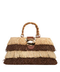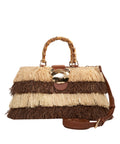 The 'Riad' handbag stands out with its extraordinary design featuring wrap-around fringe details that create a dynamic look. A characteristic handle gives the accessory a natural yet elegant touch. The model is rounded off by shiny gold-tone metal details and a striking closure on the front.