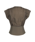 This exquisite Staud top stands out with its refined design. It combines a semi-transparent, draped upper part with an elegant V-neck and short, softly falling sleeves. The fitted, structured lower part ensures a flattering silhouette. A luxurious garment, perfect for special occasions.