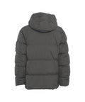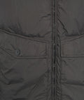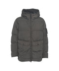 This Stone Island puffer jacket features a quilted construction for optimal warmth. It includes a non-detachable hood and practical front flap pockets. The iconic logo patch on the sleeve highlights the brand's origin. Made in Indonesia, it combines functionality with the brand's distinctive style.