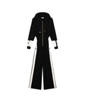 This stylish jumpsuit by Elisabetta Franchi combines comfort with sporty elegance. It is equipped with a practical hood and a full-length two-way zipper. The wide legs and striking side logo stripes underline the modern design. Ideal for a relaxed yet chic look.