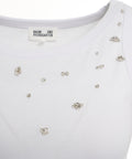 The elegant 'Joline' top from Baum und Pferdgarten presents itself as a stylish essential for any wardrobe. Crafted from pure organic cotton, it offers a pleasantly soft feel on the skin. The classic round neckline is accentuated by elegant decorative embellishments, adding a touch of glamour. A luxurious design that perfectly combines comfort and refined aesthetics.