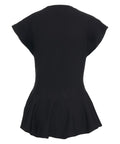The 'Sean' top by Herskind, crafted from a lightweight knit, features a clean, slightly fitted silhouette that gently flares into a peplum hem, accentuating the waist. The classic round neckline and minimal short sleeves complete the modern, refined design, making it versatile and easy to style from day to night. Perfect for elegant outfits without compromising on comfort.