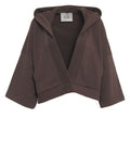 This elegant 'Tokyo' cardigan features a modern cropped design and a relaxed silhouette. Crafted from a high-quality cotton blend, this piece offers superior comfort and a luxurious feel. Distinctive details such as the hood and wide sleeves highlight the contemporary look. Made in Italy.