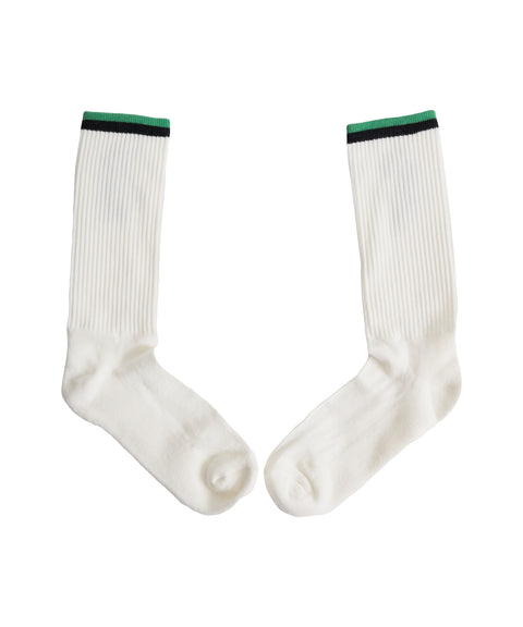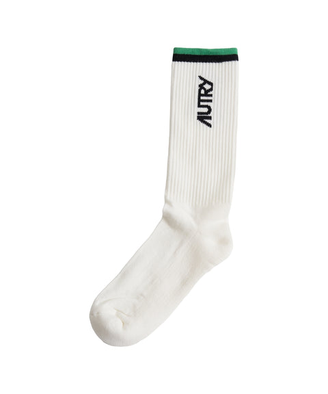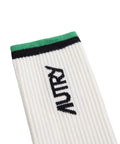 These high-quality ribbed knit socks by Autry offer pleasant wearing comfort and an optimal fit thanks to their finely ribbed structure. The classic design is complemented by contrasting stripes on the cuff and the distinctive vertical logo embroidery on the side. As a versatile accessory, they stylishly complete any outfit. Made in Italy.