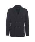 This stylish double-breasted blazer by Circolo 1901 impresses with its modern design and comfortable knit texture. It features classic details such as a wide lapel and patch pockets with a rounded hem. The understated yet striking look makes it a versatile companion for both casual and dressier occasions.