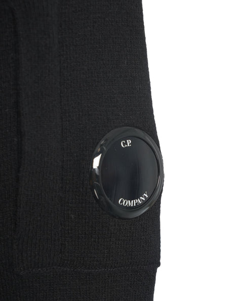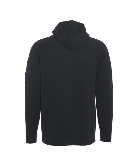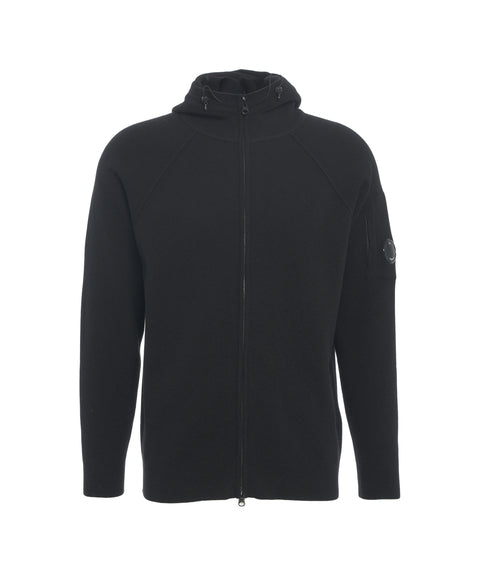 This high-quality knit hooded jacket by CP Company is characterized by its fine knit textile and full two-way zip closure. It features a practical hood with drawstring for optimal comfort. A characteristic logo detail on the sleeve underlines the brand's iconic design.