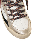 The exclusive 'SK8 Deluxe' sneakers by Crime London feature a sophisticated material mix and a unique aesthetic. Their design combines shimmering accents with striking lace details and a characteristic distressed-look sole. These stylish leisure shoes embody modern luxury and are perfect for versatile looks. Made in Italy, they stand for the highest quality and craftsmanship.