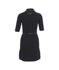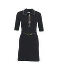 This elegant mini dress by Elisabetta Franchi impresses with its bouclé textile and stylish collar. A prominent front zipper and short sleeves give the design a modern touch. It is a versatile choice for sophisticated occasions.