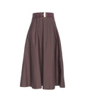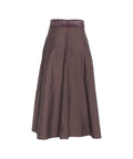 This midi skirt by Elisabetta Franchi features an elegant A-line silhouette, created by delicate folds at the waist. It extends to mid-calf and flatters the figure with a high-rise waist. A striking belt with a glossy finish and distinctive buckle complements the design. This exquisite garment is made in Italy.