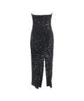 This glamorous midi dress features a strapless design and is entirely adorned with shimmering sequins, ensuring a spectacular appearance. The form-fitting silhouette and elegant midi length accentuate the feminine figure, making it the ideal choice for festive occasions. The dress is carefully crafted and Made in Italy.