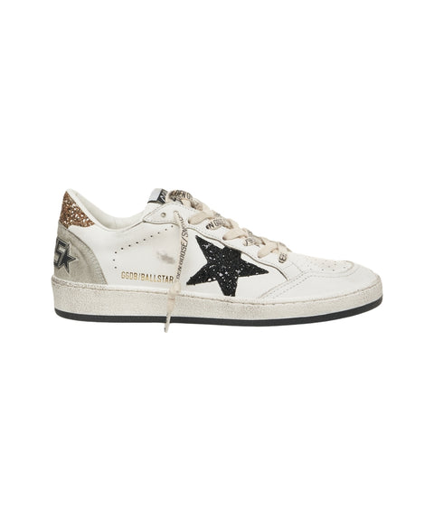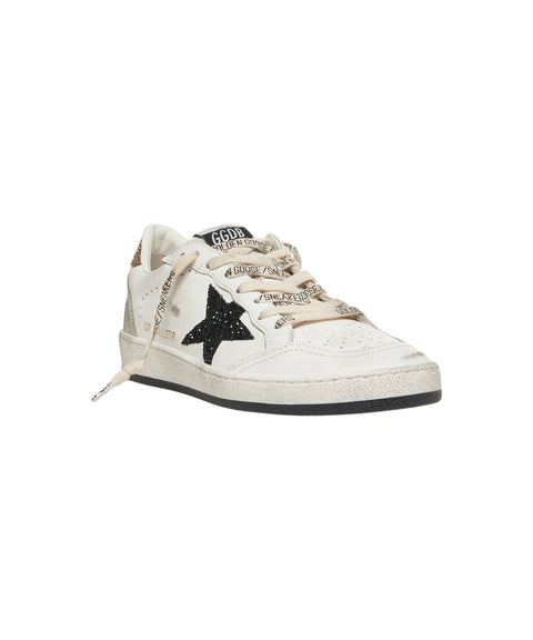 The iconic 'Ball Star' sneakers by Golden Goose combine luxurious design with a striking vintage look. Crafted from high-quality leather, they feature a characteristic star appliqué and suede details. The unique distressed finish gives each pair an individual touch. Made in Italy, these sneakers are a must-have for relaxed elegance.