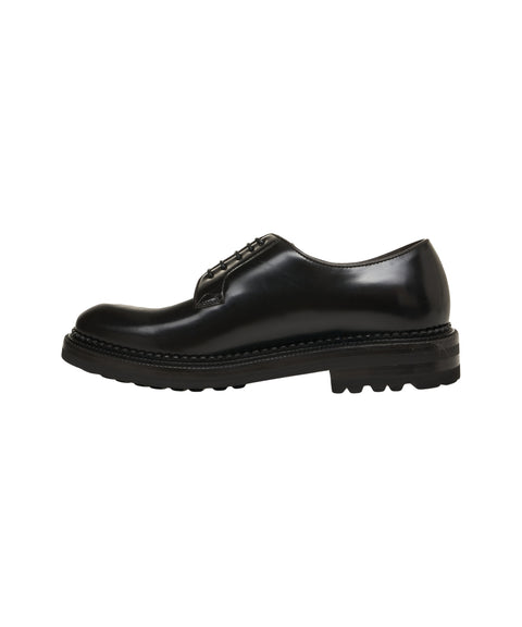 This classic derby shoe from Green George is crafted from high-quality smooth leather. It features an elegant lace-up closure and a distinctive profile sole for optimal grip and a robust look. This stylish model, made in Italy, combines traditional craftsmanship with timeless design.