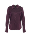 This elegant silk blouse by Himons impresses with its flowing drape and the delicate sheen of the luxurious material. It features a classic shirt collar and long sleeves with buttoned cuffs. The straight hem and concealed button placket emphasize the minimalist and timeless design, making it versatile to combine.