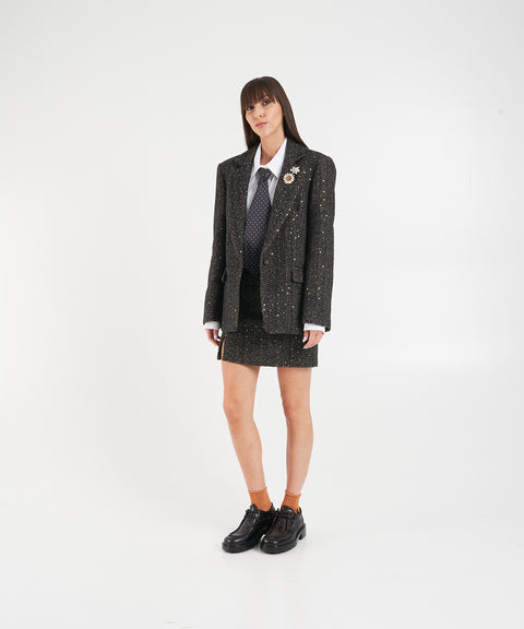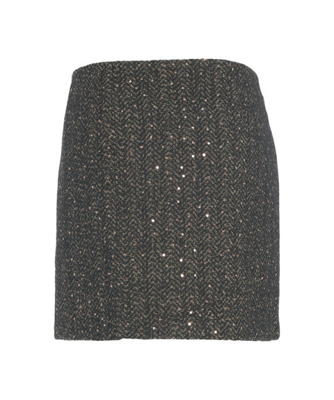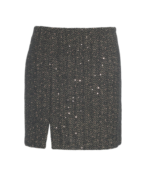 This stylish mini skirt features all-over sequin appliqués that form a geometric pattern. A subtle side slit adds a modern touch to the design and allows for freedom of movement. This luxurious model is ideal for adding a glamorous touch to any outfit. Made in Italy.