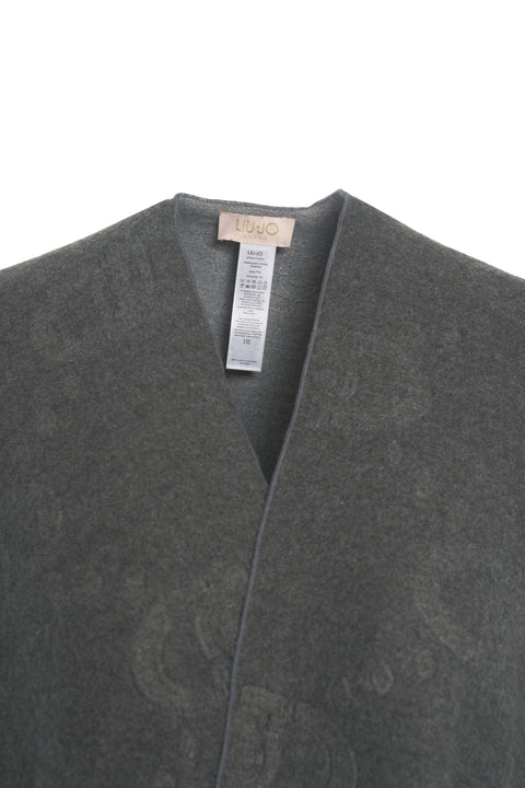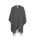 This elegant cape features a subtle all-over pattern, lending it a refined texture. It is equipped with characteristic fringes at the hem, ensuring stylish movement. The soft drape and open design make it a versatile layering piece for any season.
