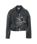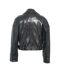 This luxurious leather jacket by Liu Jo Denim stands out with its distinctive biker style. It features a glossy finish and an asymmetric zip closure, creating a bold accent. The classic lapel collar and the adjustable belt at the hem emphasize its timeless design, while the loose fit ensures modern comfort. A versatile essential for sophisticated looks.