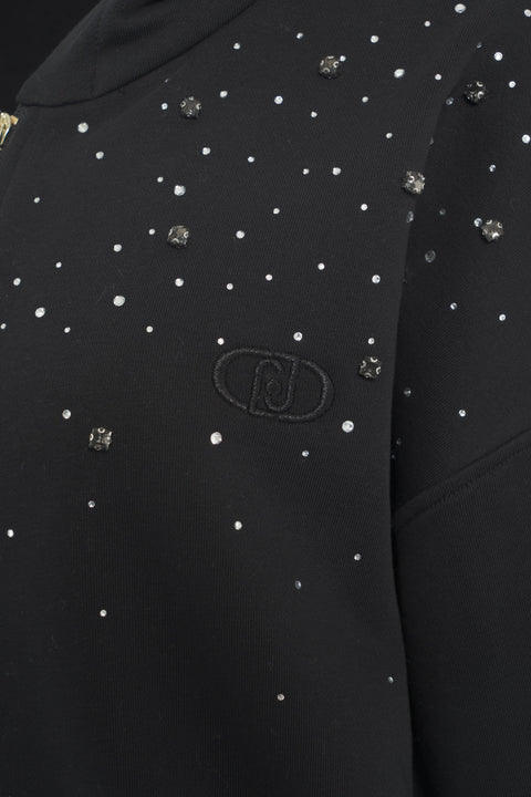 This luxurious hoodie by Liu Jo Denim features sparkling rhinestone applications on the upper body. It is designed with a full-length zipper, a practical hood with drawstring, and a kangaroo pocket. Ribbed cuffs and hem ensure a comfortable fit. A versatile piece for a stylish casual look.