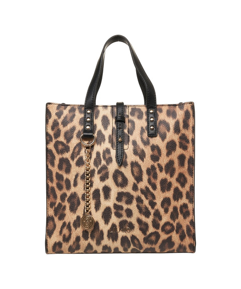 The elegant 'Doba' handbag by Liu Jo features a striking animal print that adds a luxurious touch to any outfit. It is adorned with robust handles and decorative metal elements that emphasize its sophisticated style. A stylish chain pendant with the logo completes the design. Inside, it offers practical storage space for your essentials.