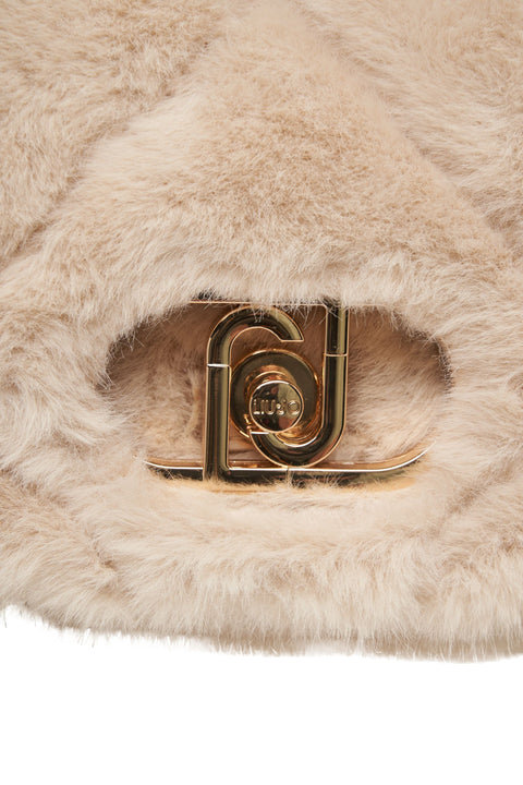 The luxurious Liu Jo 'LaPuffy' shoulder bag features soft faux fur with a quilted design. An elegant gold-toned turn-lock clasp with logo detail secures the main compartment. The bag also comes with a detachable chain shoulder strap, offering versatile carrying options. Its voluminous, puffer-like design makes it a stylish accessory.