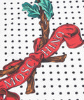 This elegant foulard from the Moschino brand impresses with a classic polka dot design. It was carefully crafted in Italy and convinces with its smooth quality that feels pleasant on the skin. As a versatile accessory, it can be worn around the neck, in the hair, or on a bag, adding a stylish and luxurious touch to any outfit.