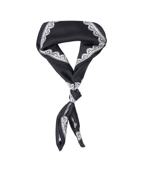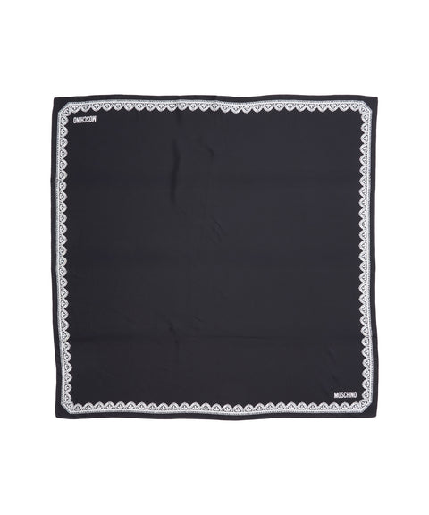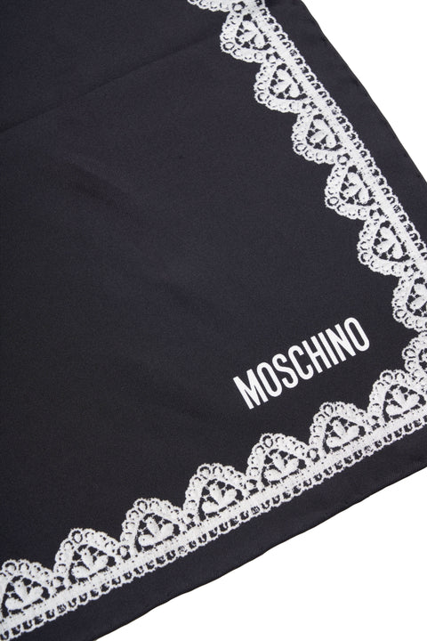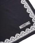 This high-quality silk scarf by Moschino impresses with its elegant lace pattern and striking logo print. Crafted in Italy, it is a versatile accessory that adds a luxurious touch to any outfit. The soft silk ensures a comfortable feel and flowing drape.