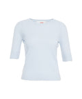 This classic knit sweater offers timeless elegance. It features a round neckline and elegant three-quarter sleeves, stylishly finished with ribbed cuffs. The hem is also ribbed, ensuring a perfect fit. A versatile garment, made in Italy, ideal for sophisticated everyday looks.