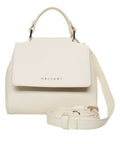 This elegant handbag from Orciani impresses with its classic design and high-quality craftsmanship. Crafted from fine leather, it offers a luxurious feel and appealing aesthetic. A practical magnetic button closure under the flap ensures secure storage of your essentials, while the subtle logo details highlight the exclusivity of Italian artistry. Made in Italy, this accessory is a versatile companion for everyday wear and special occasions.