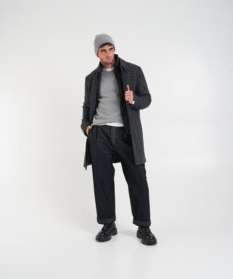 This classic coat impresses with its timeless glencheck pattern and modern cut. This coat features a well-designed button placket and a stylish collar. It is ideal for elegant autumn and winter outfits and offers optimal wearing comfort. An integrated stand-up collar with zip provides additional warmth and a sophisticated layered look.