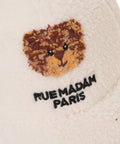 This fashionable 'MARVIN' cap by Rue Madam is crafted from soft faux fur with a teddy bear look, offering optimal wearing comfort. The design features a charming teddy bear embroidery on the front. Below it, the embroidered 'RUE MADAM PARIS' lettering adds an elegant accent. A versatile accessory for stylish everyday wear.