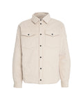 This quilted jacket by Save the Duck, model 'Mily', is crafted from soft corduroy and features innovative Plumtech filling, offering warmth without animal products. It presents a classic shirt-jacket style with a Kent collar, full-length button placket, and two practical flap pockets on the chest. Two additional side pockets complete the functional design. A versatile garment for a modern casual look.