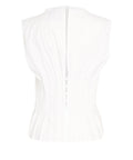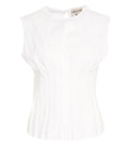 This elegant Semicouture blouse embodies timeless sophistication. Crafted from a high-quality cotton blend, it offers comfortable wear and a figure-hugging silhouette. Characteristic features include fine pleats on the front, creating a structured look, and the discreet button closure at the nape. Made in Italy, it is a testament to excellent craftsmanship.
