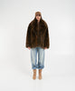 This luxurious Semicouture jacket is crafted from high-quality faux fur, ensuring a particularly soft feel. It features a distinctive high collar, offering extra comfort and warmth. The voluminous cut emphasizes the elegant yet modern look, perfect for stylish appearances in the colder season.