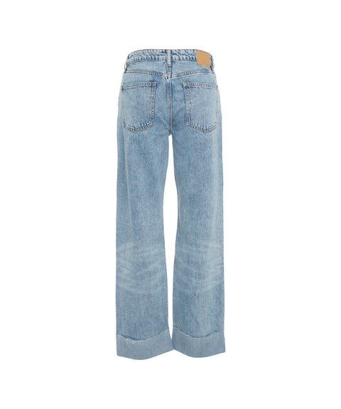 These 'Stevie Turn Up' jeans by Seventy & Mochi feature a wide cut and distinctive turn-up cuffs. The design is complemented by casual distressed details on the legs and the classic five-pocket style. A versatile essential that combines urban chic with relaxed comfort.