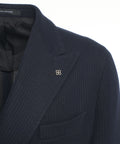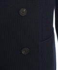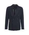 This double-breasted blazer by Tagliatore stands out with its elegant silhouette and characteristic knit texture. It features a classic lapel collar and patch pockets, highlighting its sophisticated style. A subtle logo detail on the lapel attests to the brand's quality. Made in Italy, this blazer embodies excellent craftsmanship.
