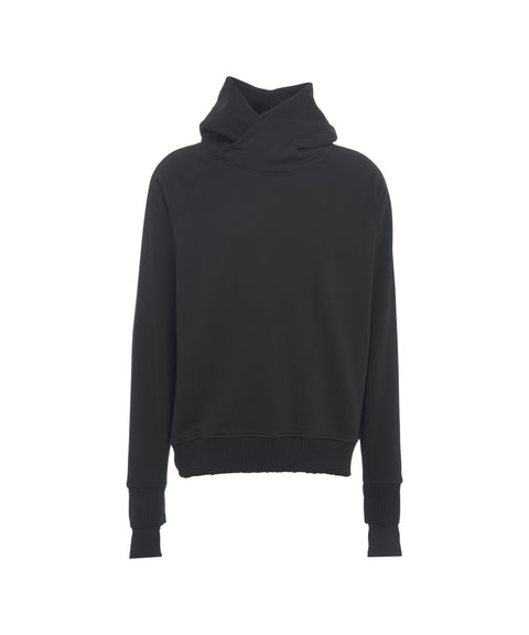 This modern hoodie by Thom Krom features an innovative, high collar that seamlessly transitions into the hood. Ribbed cuffs on the long sleeves and hem ensure a comfortable fit and a sporty look. The casual design offers a versatile silhouette for modern everyday wear, combining comfort with urban style.